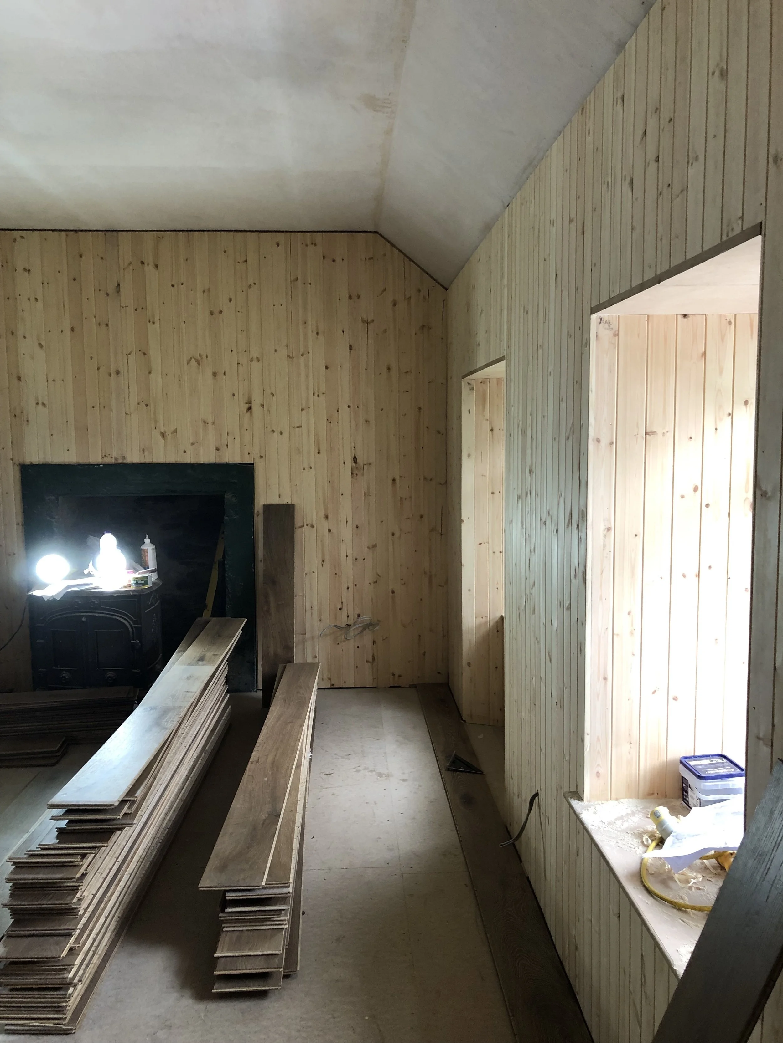 This fully off grid cottage was in a very poor state of repair, with leaking roof, mould and rotten floors. We substantially renovated the cottage to a level that allowed the clients to carry out their own programme of decoration. As well as the major refurbishment work we altered the plan and fenestration to create lighter bedrooms with access directly into the landscape and a large open plan living space. We added a new plumbing and heating system powered solely by a wood burning stove with back boiler. New electrics were provided designed to be powered by a small scale hydro system from the nearby burn.